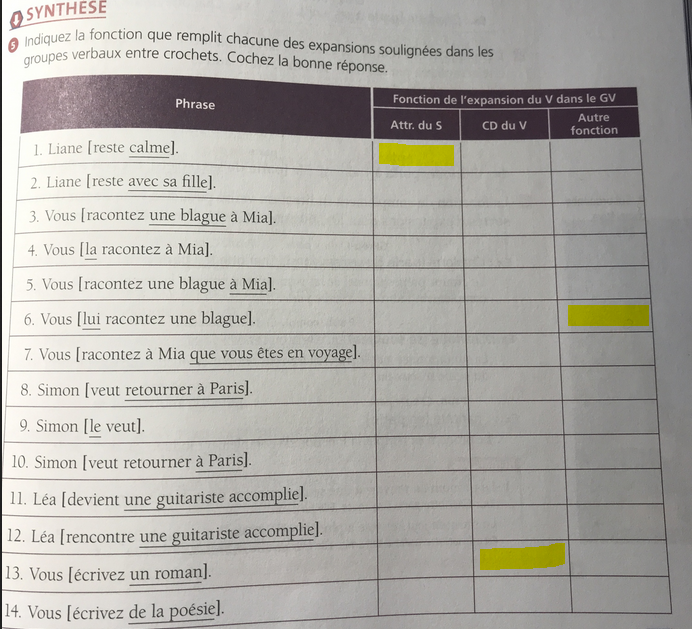 Consulte cette fiche au besoin pour réviser les fonctions des expansions du verbe et les catégories grammaticales auxquelles ils peuvent appartenir.