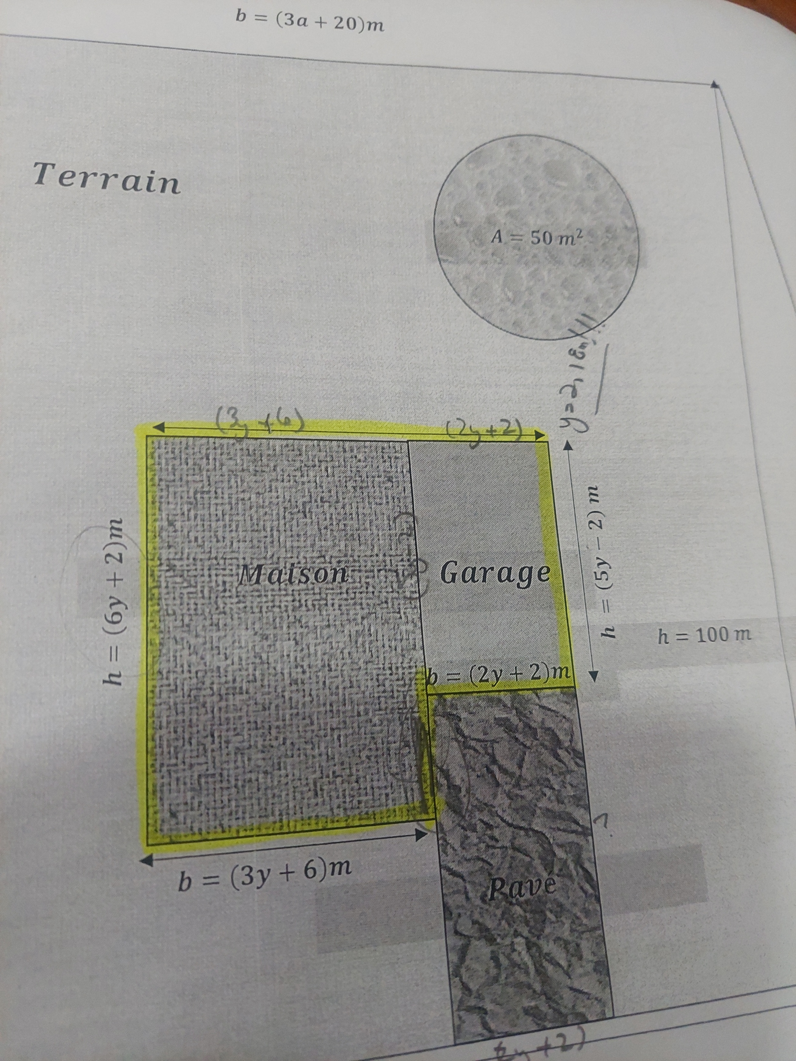 Il est vrai que si le périmètre est de 64 (si on ne compte pas ce qui est collé maison/garage à l'intérieur), y = 2.