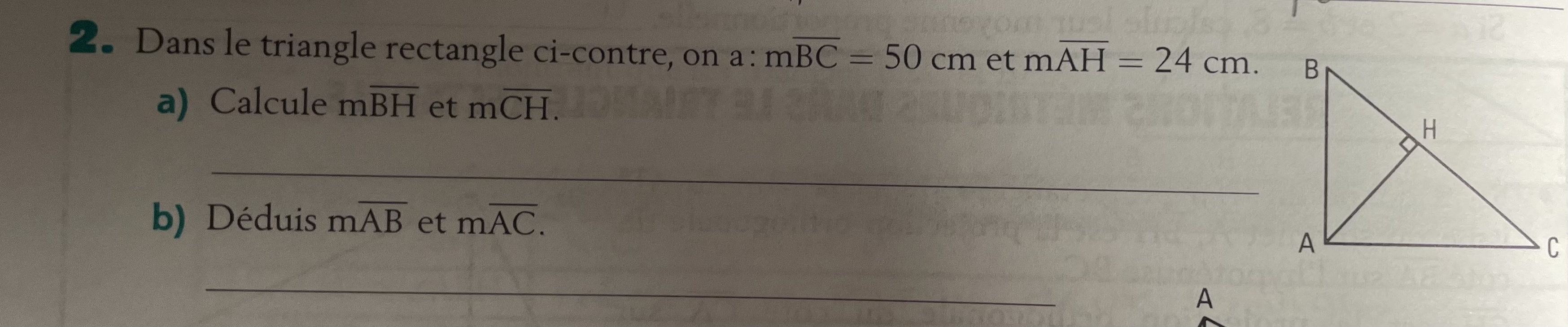 Bonjour pouvez-vous m’aider à résoudre ce problème, je sais qu’il faut utiliser les relations métriques mais je ne sais laquelle utiliser