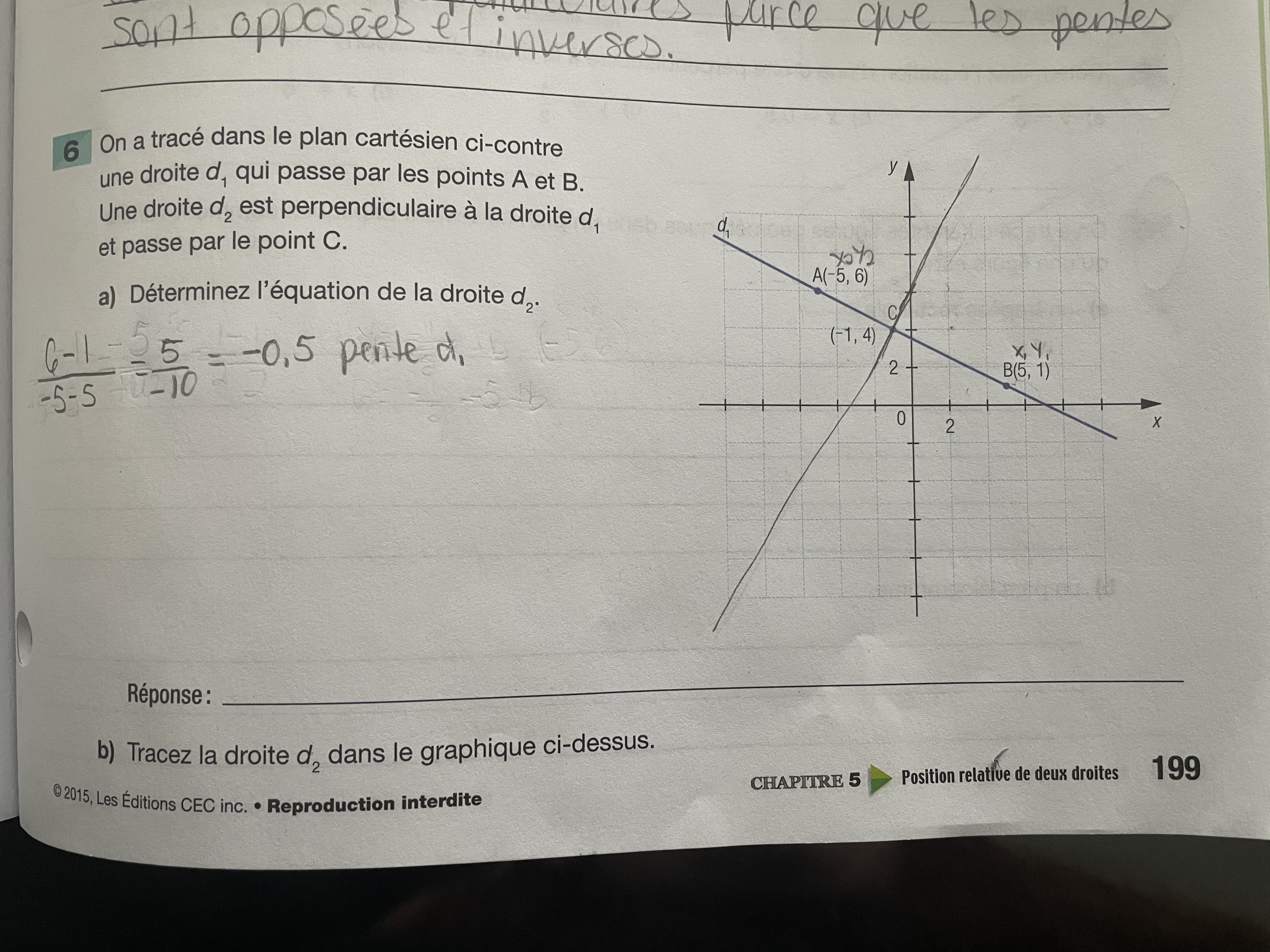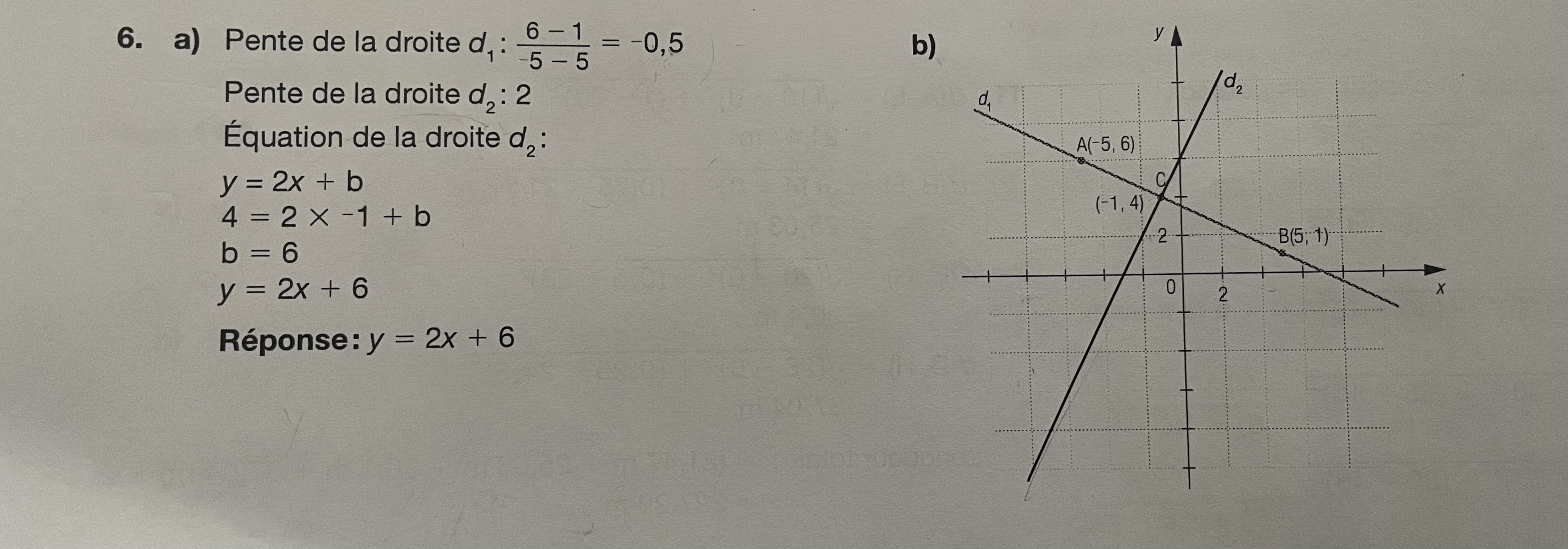 Dans mon corrigé ils disent que la pente de la droite d2 est 2, mais je ne comprends pas parce que la pente de la droite d1 = -0,5 comment ils ont pus en venir à 2?