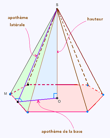 Est ce qu'il me faudrait l'apothème de la base de la pyramide? Parce que le volume d'une pyramide c'est ((aire de la base x hauteur)/3) et que l'aire de la base de cette pyramide c'est ((mesure d'un côté x apothème x nombre de côtés)/2).
