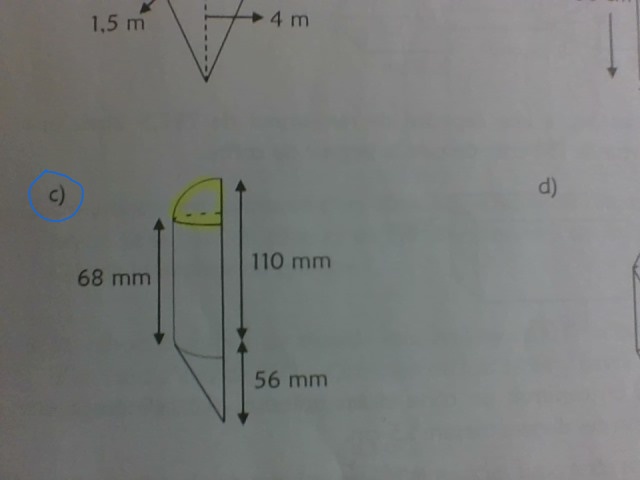 Au numéro c), je ne comprends pas comment calculer le rayon de la demi-sphère (en jaune). De plus, je ne sais pas comment calculer le volume des autres figures. * Le numéro est en lien avec le volume mais plus précisément l'assemblage de solides *. Merci d'avance pour votre aide ! :)