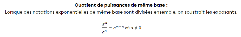 Ainsi, nous allons soustraire l'exposant du dénominateur de celui du numérateur :