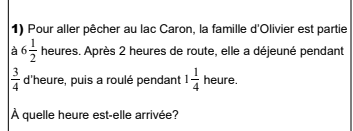 Tu dois faire une addition de temps en transformant les données en nombre décimaux. Par exemple, 6h et 1/2 deviendra 6,5h. Une fois toutes les données transformées en nombre décimaux, ce sera plus facile pour toi de les additionner.