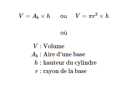 Puisque le volume de la fusée se trouve en additionnant le volume du cylindre et du cône, et que la formule de volume d'un cylindre est :