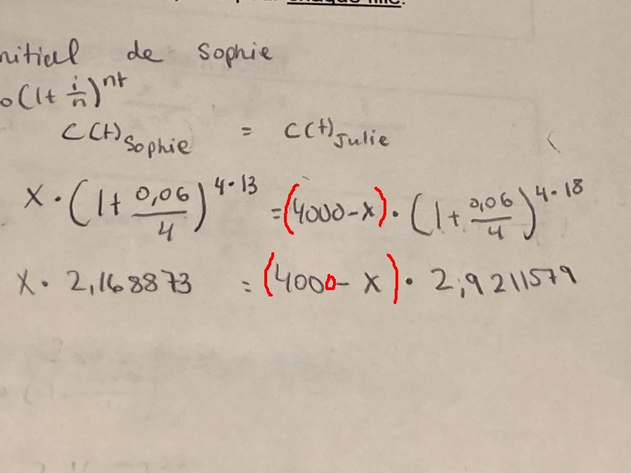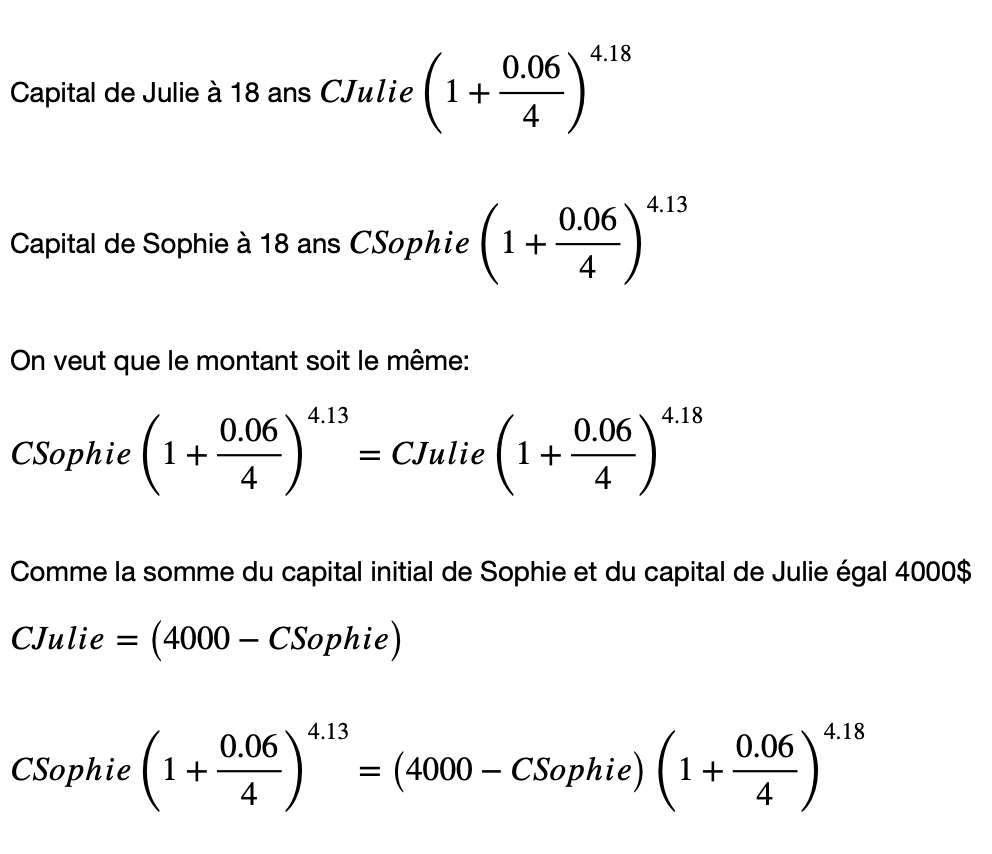 (Ici CJulie indique le capital initial de Julie alors que CSophie indique le capital initial de Sophie)