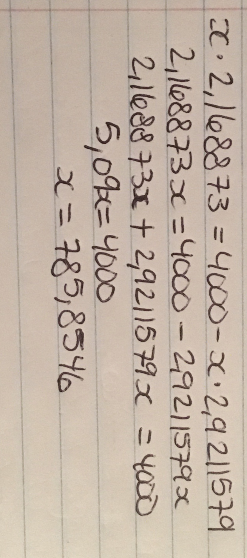 D'autre part, en mathématique, on arrondie qu'à la fin. Si on arrondissait avant, il faut utiliser le symbole d'environ. Puis, je ne suis pas sûre de comprendre quelque chose...pourquoi 4000 sur la deuxième ligne est-elle devenue 400 sur la troisième ligne?