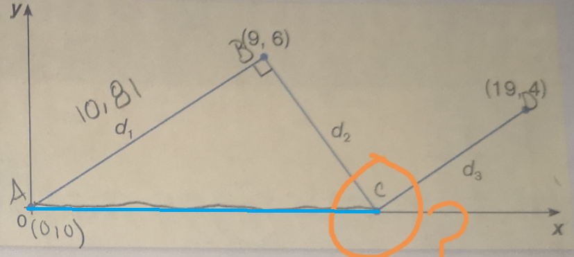 Pour trouver le x de ton point C, il te suffit de faire Pythagore. Tu pourras trouver la mesure du côté en bleu.