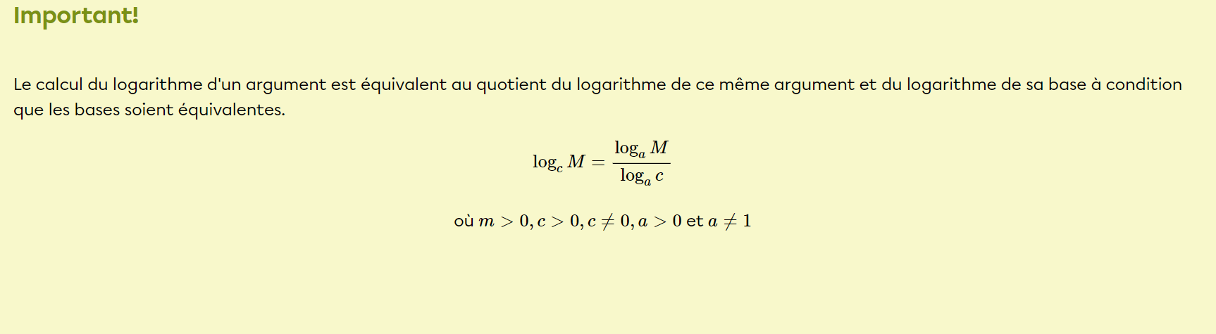 Le a dans cette image peut être remplacé par 10, car sur la calculatrice il n'y a que les log à base 10 (et à base e [que tu n'as surement pas vu encore]).