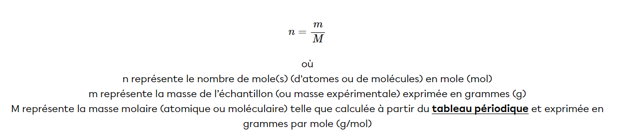 Le défi dans ce problème est de trouver la quantité de moles de CO2 à partir des quantités de réactifs. La première étape est de convertir les masses de réactifs en moles. Pour ce faire, tu dois utiliser leurs masses molaires et la formule suivante: