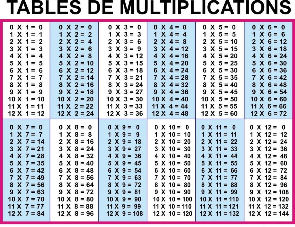 Oui, c'est vrai que de mémoriser la table de multiplications.