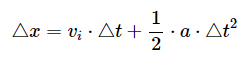 Avec cette vitesse, tu pourras isoler la variation de temps dans l'équation ci-dessous pour trouver la réponse à ta question. Puisque l'accélération est nulle, la deuxième partie de l'équation disparaît tout simplement.