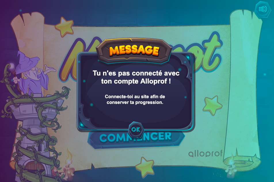 Pour jouer Ă Magimot, tu dois d'abord te connecter sur ton compte Allprof afin de sauvegarder ta progression dans le jeu.
