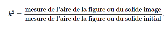 Lorsque tu connais l'aire de 2 figures semblables, tu peux alors trouver le rapport de similitude des aires (k²) en plaçant les aires dans une fraction :