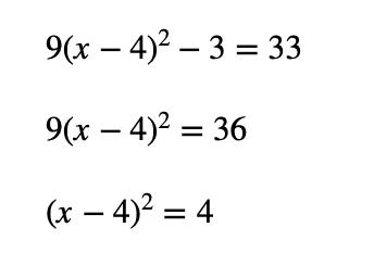 $$\frac{9 \times (?-4)²}{9}=\frac{36}{9}$$