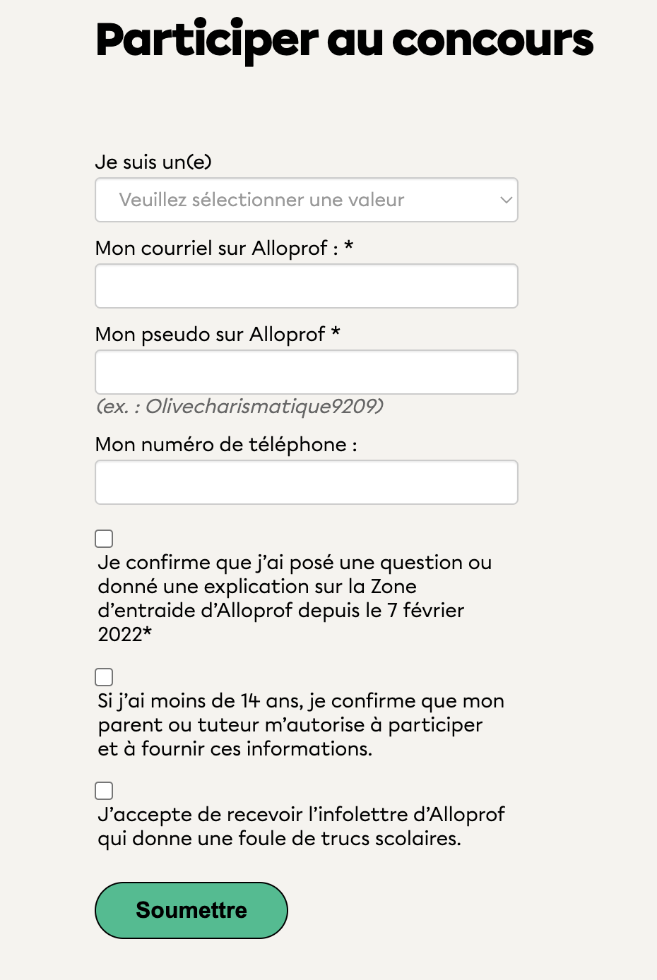 Tu dois par la suite remplir le formulaire au bas de la page. Voici à quoi ressemble le formulaire: