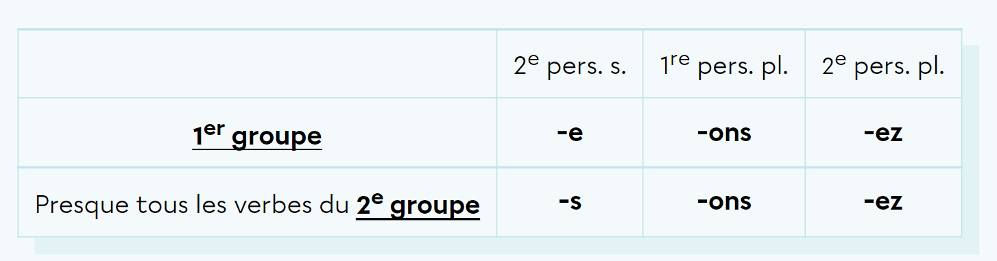 ** Attention! L'impératif est conjugué à ces personnes, mais ne prend pas de pronom.