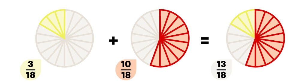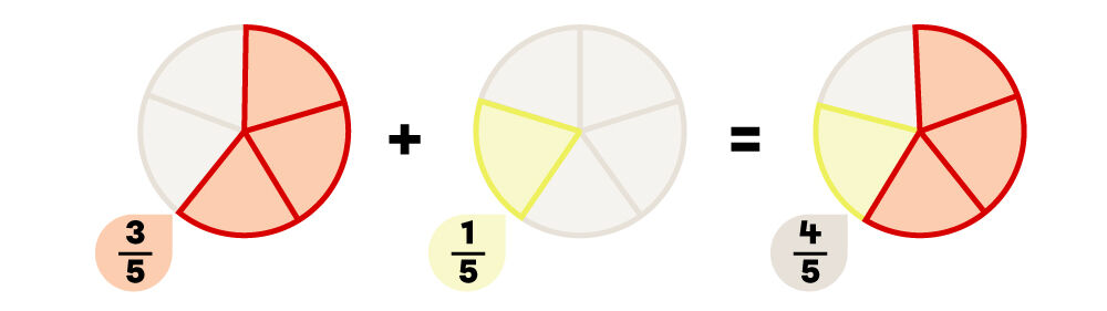Pour additionner des fractions qui ont le dénominateur commun, il suffit d'additionner la valeur des numérateurs et garder le même dénominateur.