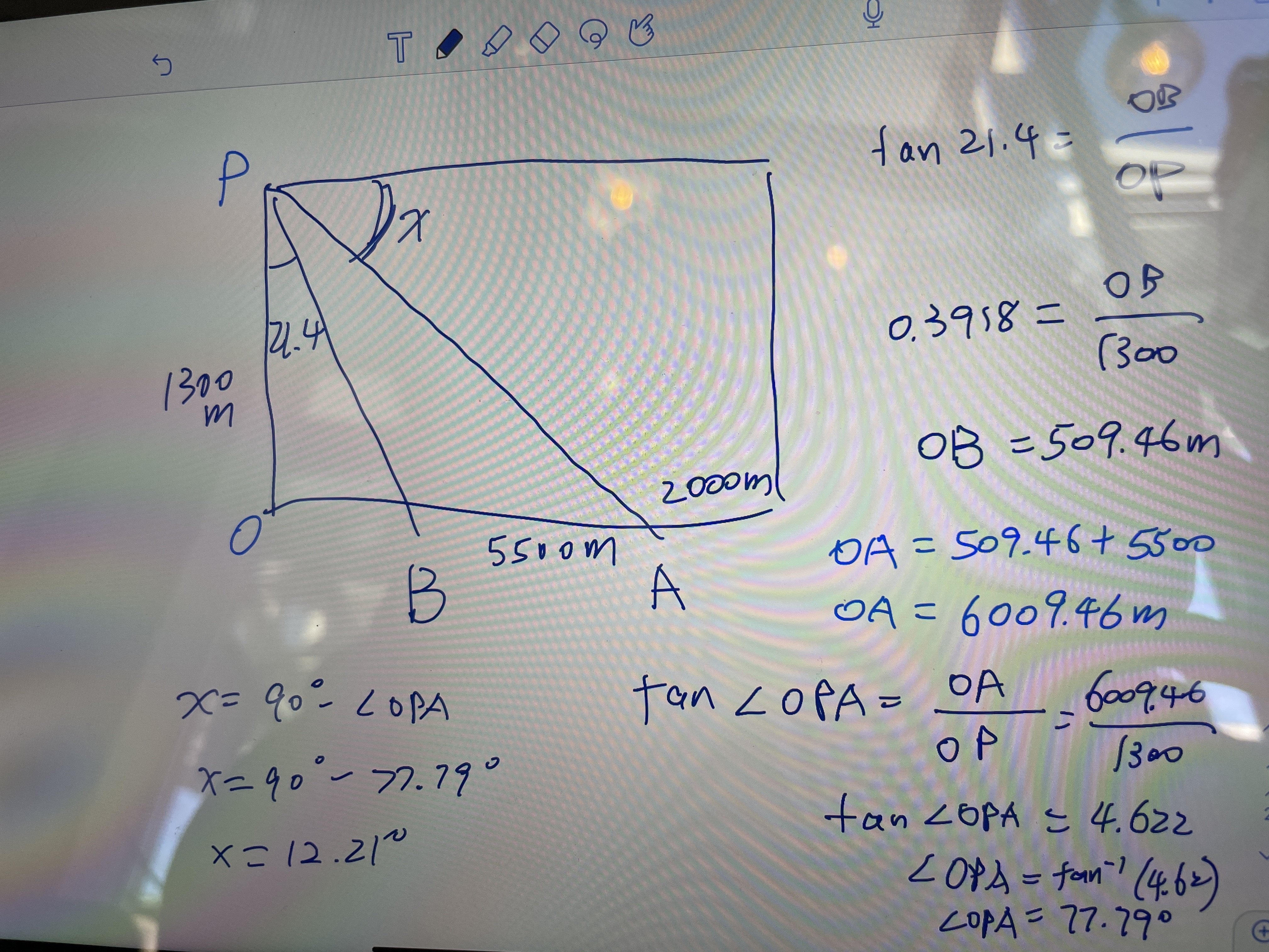 Si tu n'as pas eu de problème à faire les parties (a) et (b) alors tu n'auras pas de difficulté à trouver (c) (en utilisant la fonction tangente).