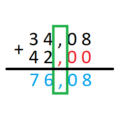2. Tu peux écrire des 0 aux endroits où il n’y a pas de chiffre après la virgule . (en rouge sur l'image)