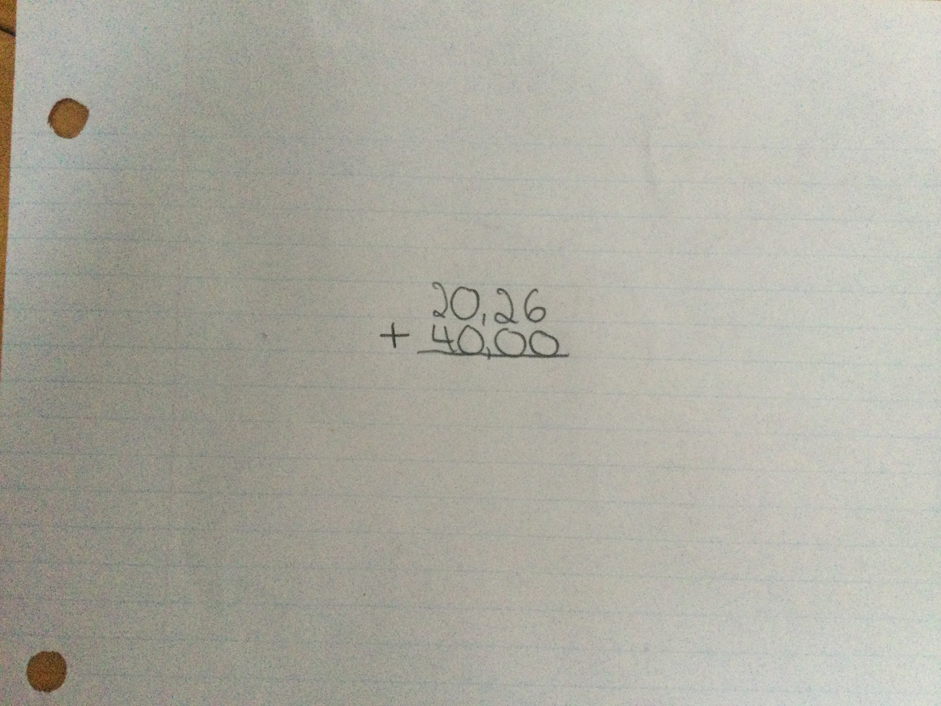 Tout d’abord, commence par marquer ton nombre décimal, (par exemple 20,26),puis ajoute ton nombre (dans l’exemple 40) en tenant compte de la virgule. Toutefois, tu peux ajouter des 0 à ton nombre en ajoutant une virgule après le 0 de 40.