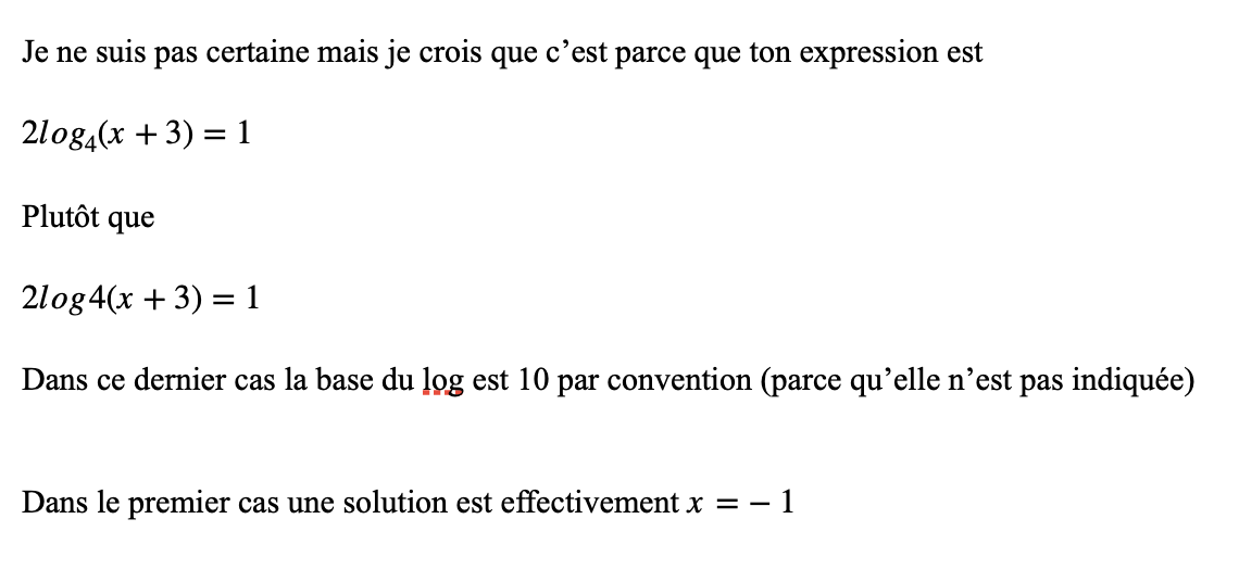 je comprends pas comment que le corrigé obtien -1 comme réponse de x