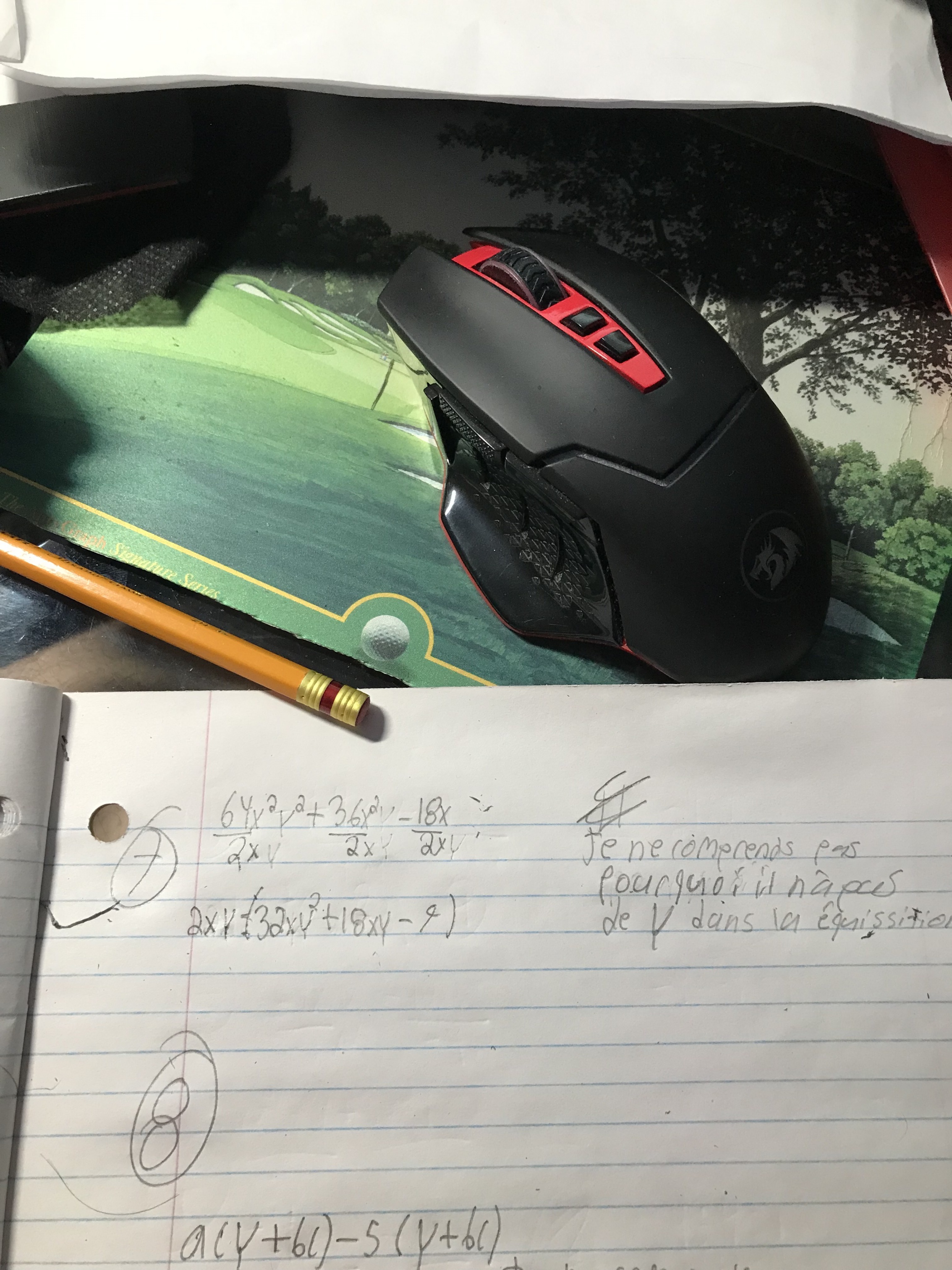 C'est mes calculs pour le numéros 7. Pourquoi le 32 xy il y a xy et y a un deux sur le y ? C'est sa que je ne comprends pas ? Pourquoi quand je diviser par 2 le xy que le y n'est pas là dans le calcul ?
