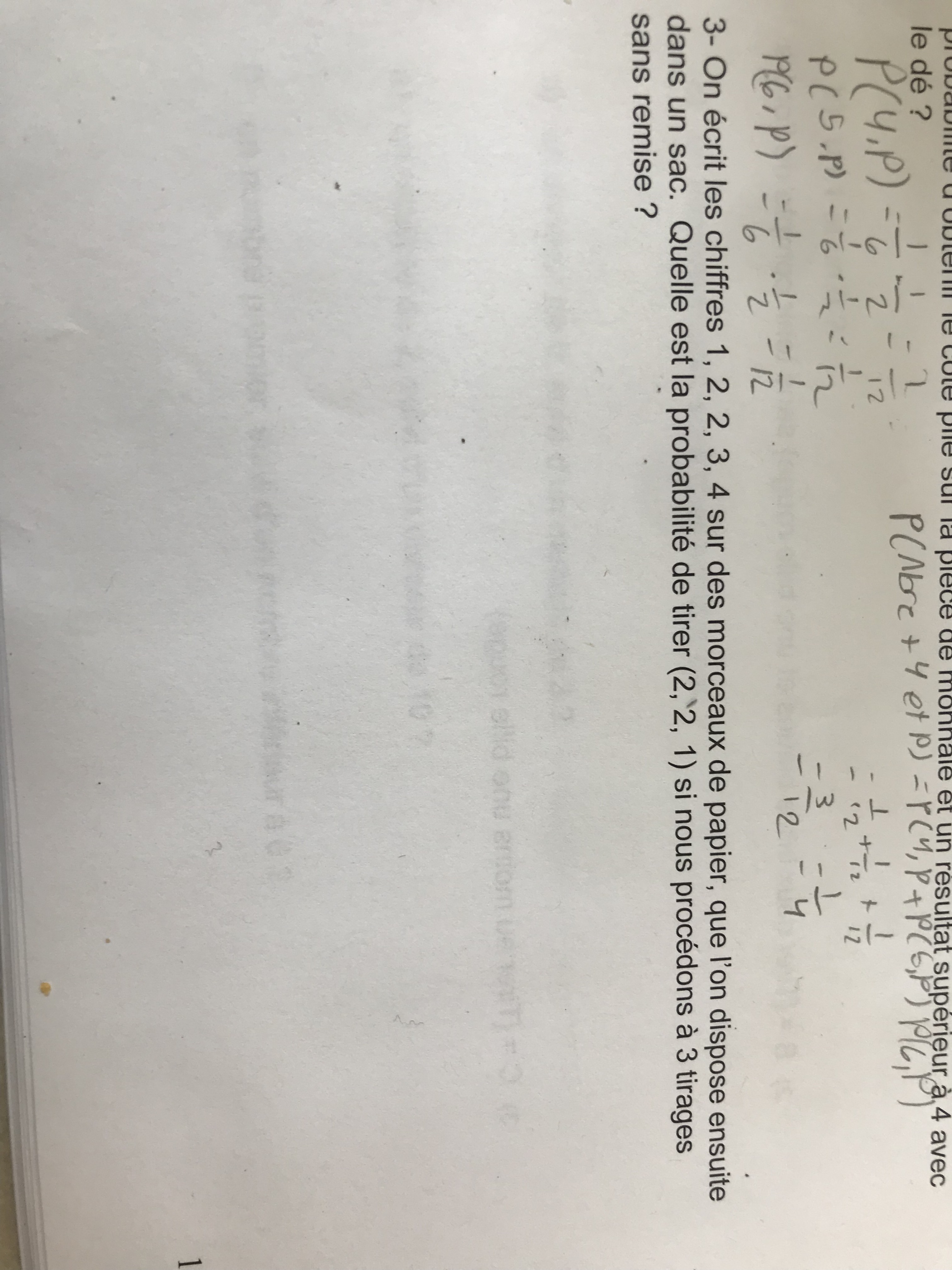 D'abord, rappelons nous qu'il s'agit d'un tirage sans remise. Cela veut dire que tout chiffre qui est tiré n'est pas remis dans le sac. Bref, le nombre de chiffres dans le sac diminue à chaque fois qu'on en tire un.
