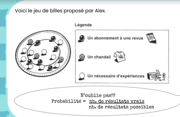 Je vois que ce dernier porte sur les probabilités. Je t'invite à consulter cette fiche: https://www.alloprof.qc.ca/fr/eleves/bv/mathematiques/probabilites-m1334. Il y aussi un vidéo pour t'aider.