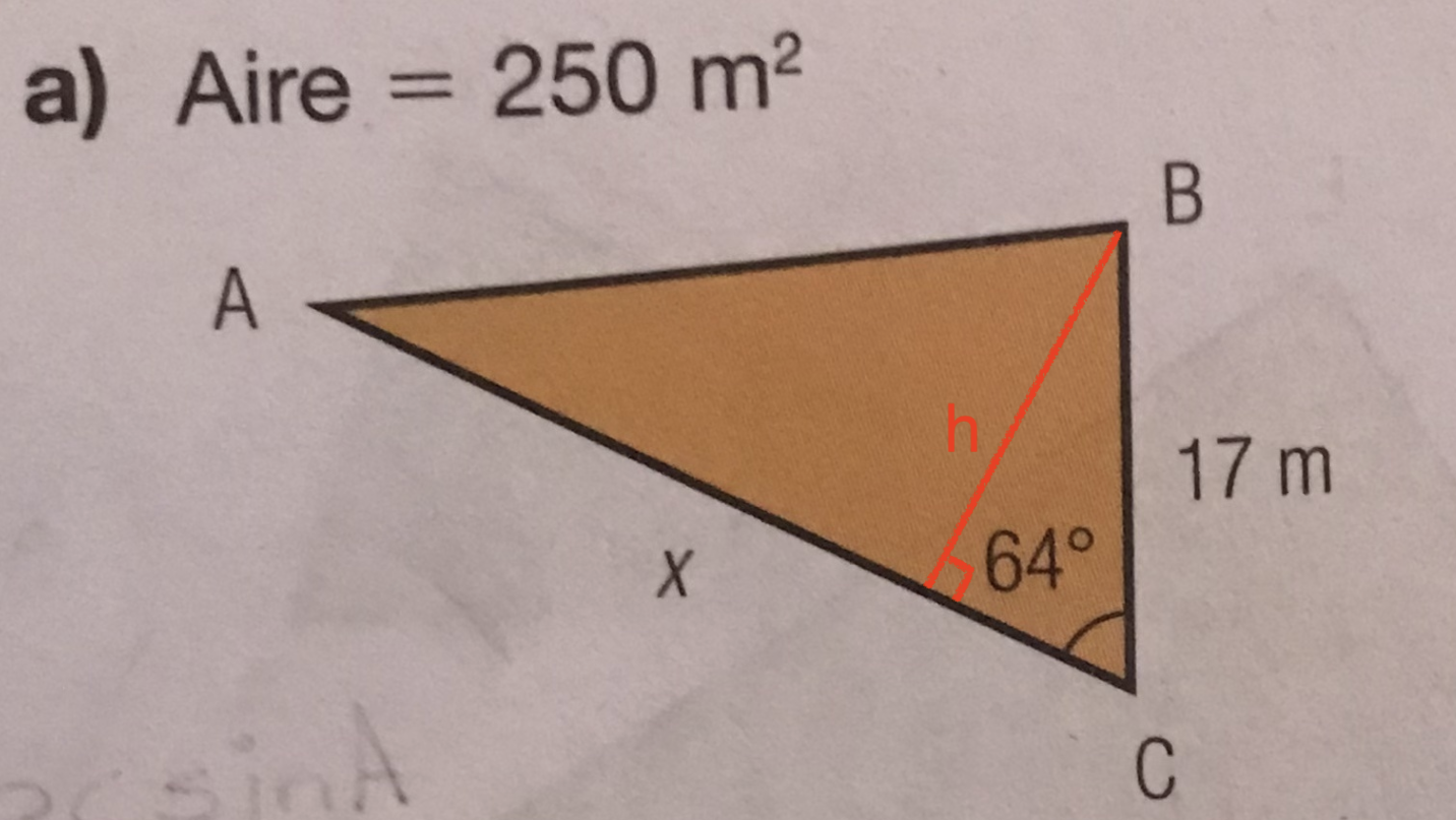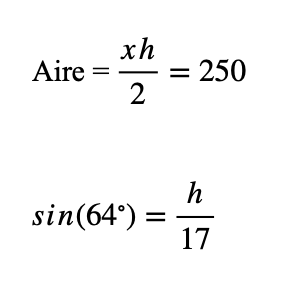 Avec la base du triangle x et la hauteur h et l'aire;