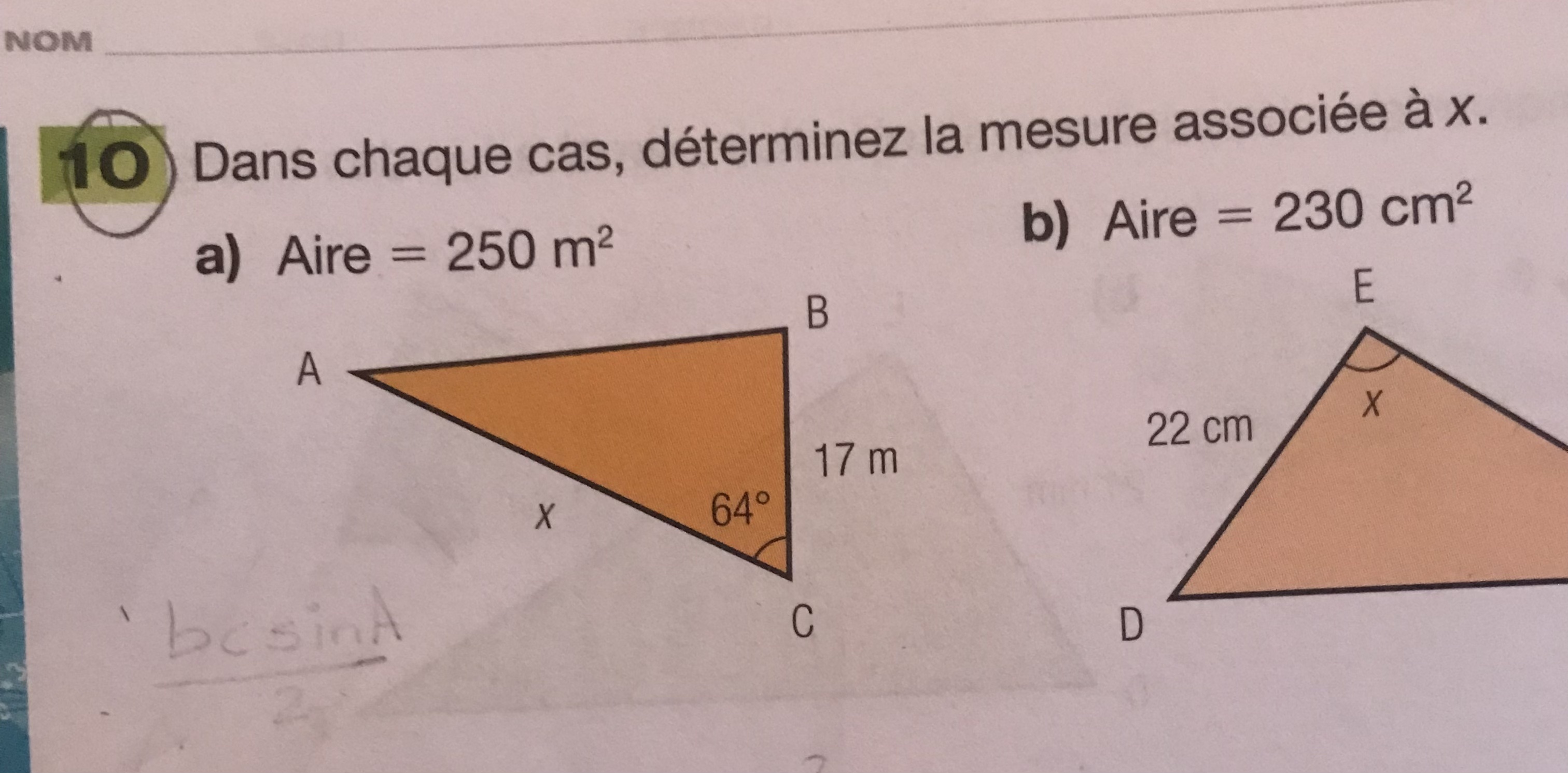 j’essaie d’utiliser la formule trigonométrique pour trouver le x dans le numéro a). mais je n’y arrive pas