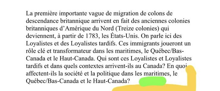 Ici, tu dois expliquer qui sont les Loyalistes et comment leur arrivée affecte les régions citées dans la question.