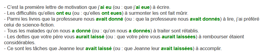 Bonjour, je voulais savoir comment va s'accorder le ppa «eu», dans cette phrase: le jour où tu as menti ou bien lorsque tu m’avais étranglé sur le point de me tuer, tous deux ne sont que quelques exemples d’actes d’agressivité que tu as eu à mon égard. avec e ou sans e, avec s ou sans s??