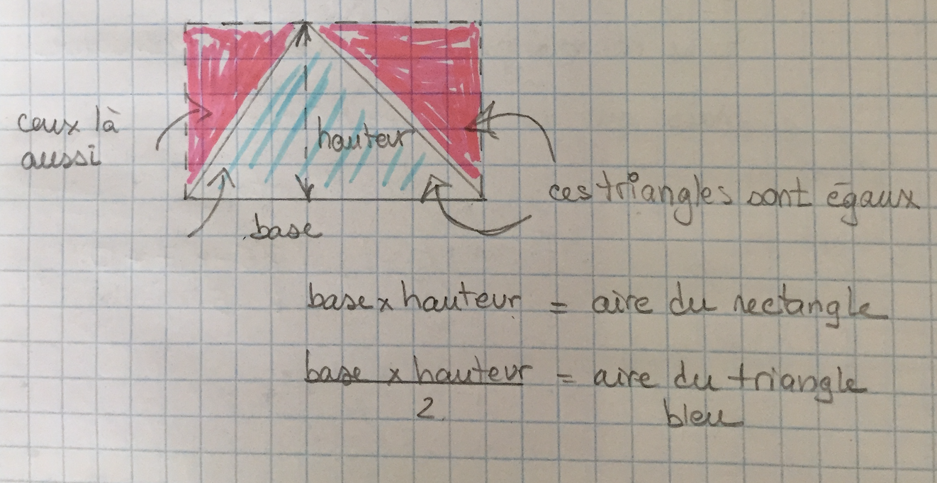 j'aimerais savoir pourquoi doit-on diviser par deux quand on calcule l'aire d'un triangle?
