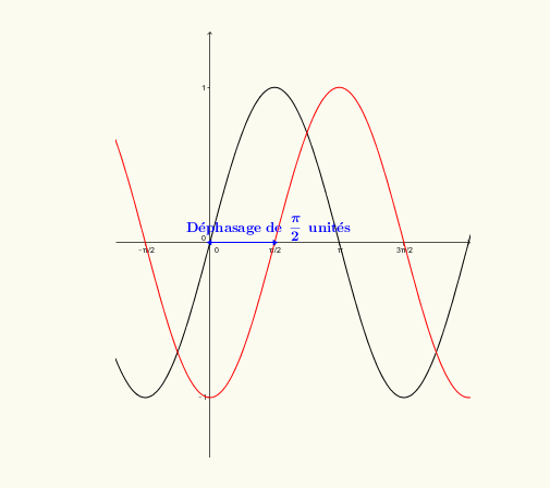 Le déphasage c'est en fait la mesure de la translation (h) d'un graphique sin, cos ou tan par rapport à leur fonction de base.