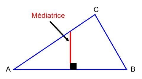 Une médiatrice est une droite perpendiculaire à un segment qui passe par son milieu.