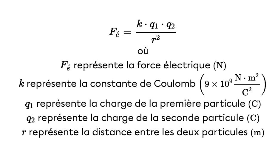 Dans cette situation, tu devras utiliser la loi de Coulomb dont la formule est la suivante: