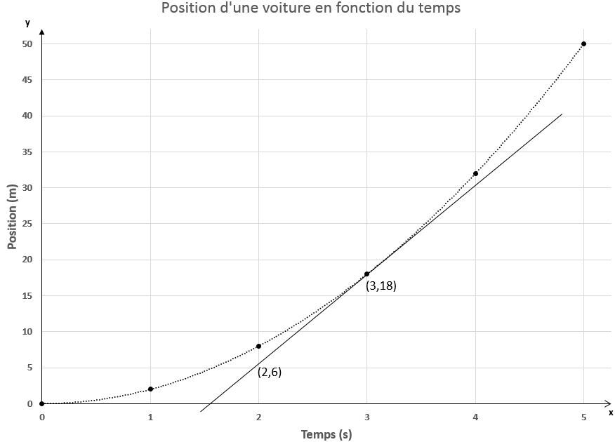 Je ne comprends pas comment tracer ce graphique. Comment déterminer cette vitesse à chaque seconde? J’ai employé la formule de v=delta x / delta t, mais je n’obtiens pas la même réponse.
