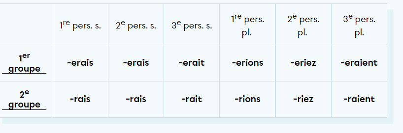 Le conditionnel présent se reconnaît surtout par sa forme en rai(s/t). Il exprime un souhait ou un désir.