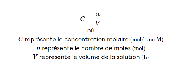 Si tu connais la concentration d'une substance et son volume, tu peux utiliser la formule de la concentration: