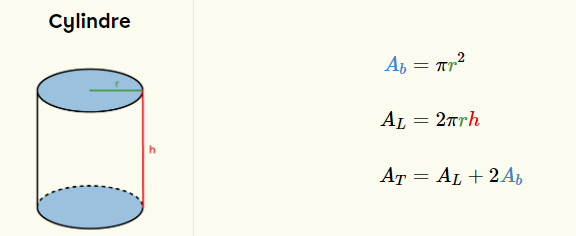 Voici la formule permettant de calculer l'aire d'un cylindre :