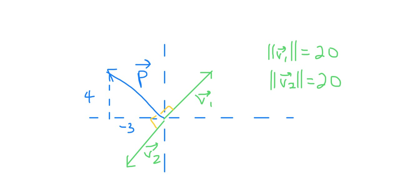 On peut en trouver un assez facilement, calculer sa norme et le multiplier par ±k, un scalaire, pour que la norme soit 20.