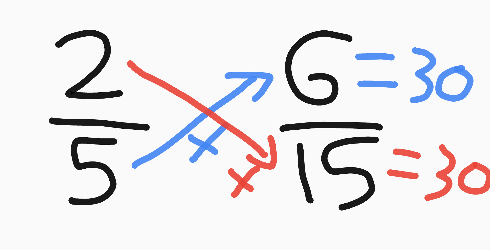 exemple 2/5 et 6/15. Tu multiplie 2 avec 15 (ce qui donne 30) et 6 avec 5 (ce qui donne aussi 30). Vu que tes deux résultats sont pareils, les fractions sont équivalentes.