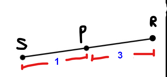 « Le point P partage le segment SR dans un rapport 1:3 ».