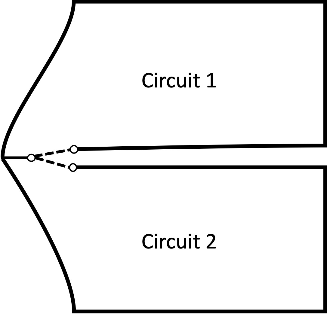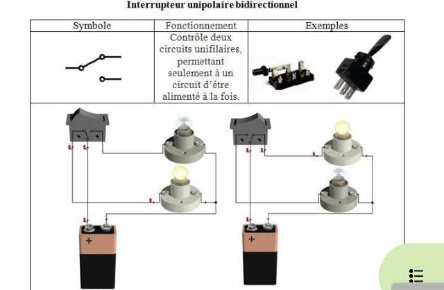 L'interrupteur peut soit fermer un circuit, soit fermer l'autre, de sorte à ce qu'un des deux est toujours ouvert, mais jamais les deux en même temps :