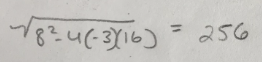 C'est 8²-4(-3)(16) qui donne 256, et non √ 8²-4(-3)(16) ;)