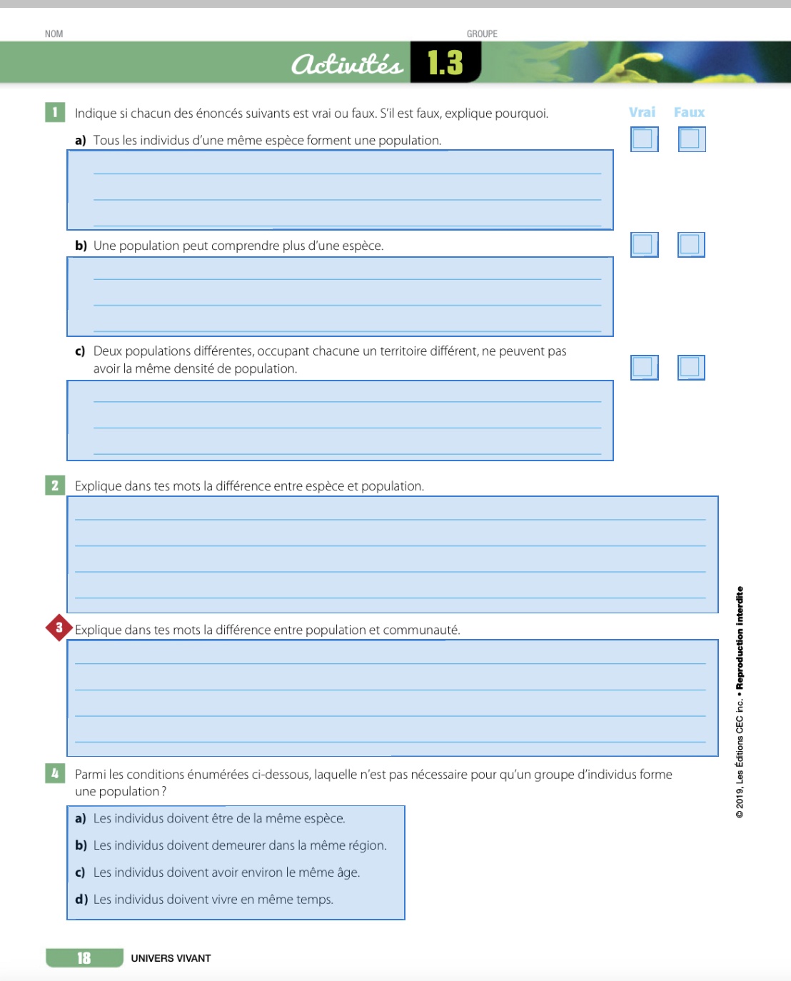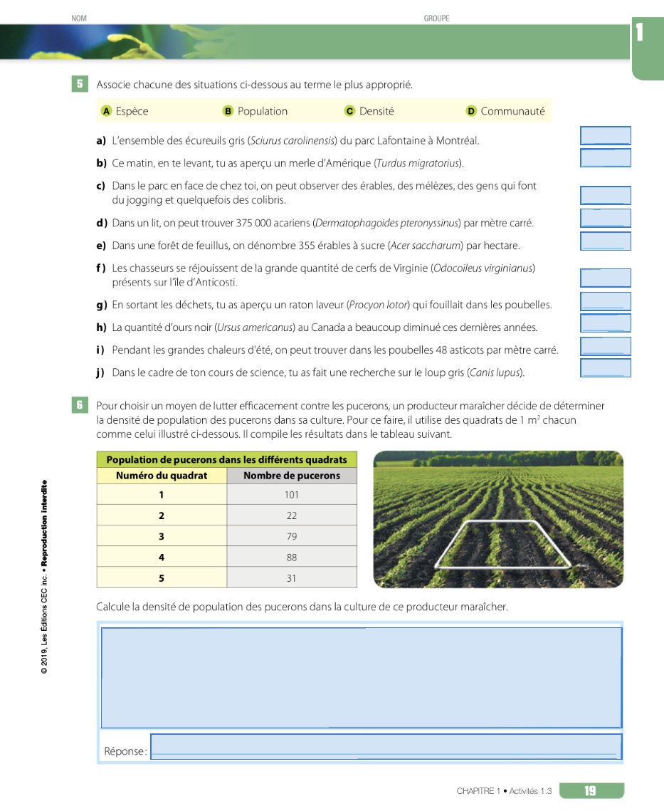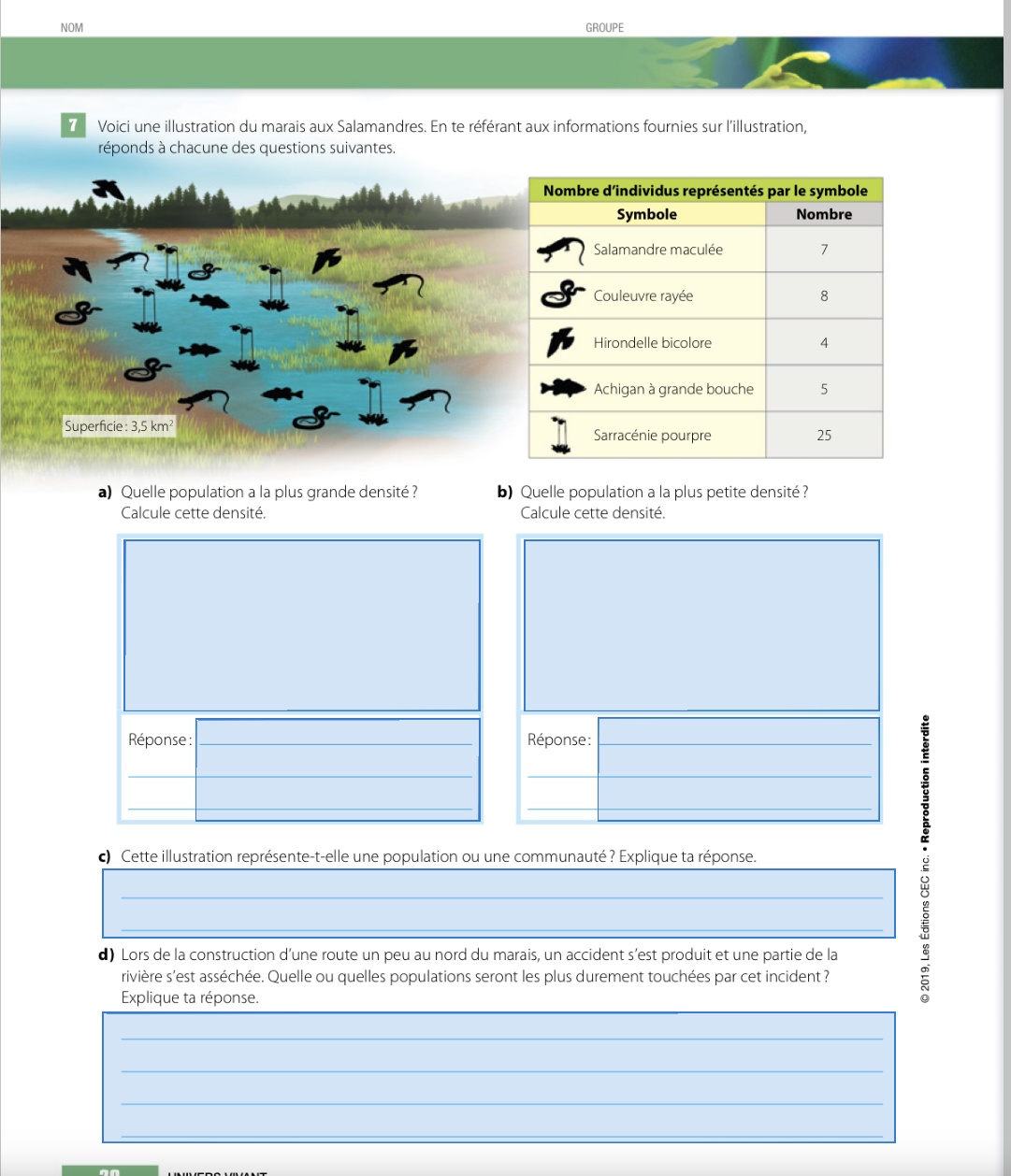 J'avais une question en sciences a propos des population des communauté la densité,etc.