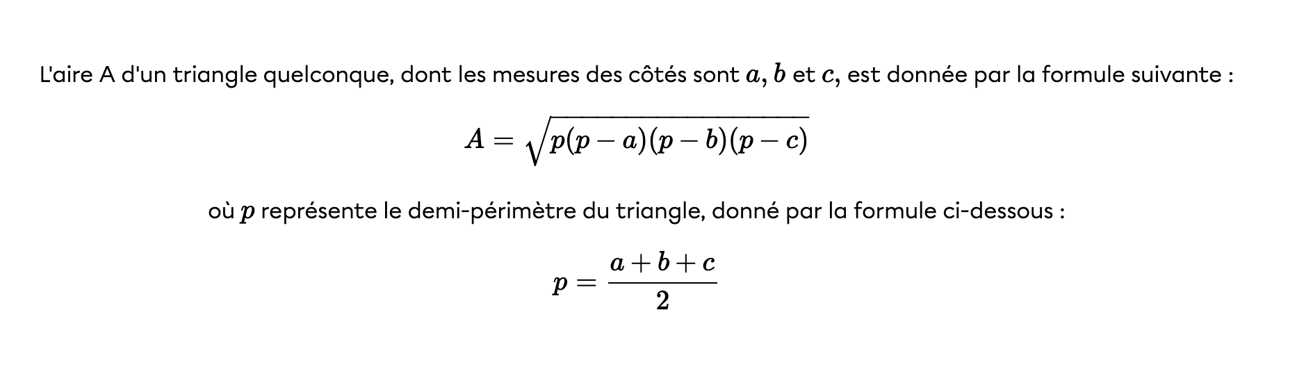 vu que tu connais les trois coter utilise la formule de héron et celle de l'aire d'un triangle