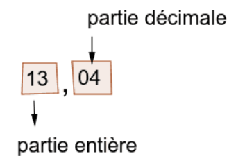 et un nombre décimal est un nombre ayant une virgule. À gauche de la virgule, on retrouve l'entier, et à droite, la partie décimale.