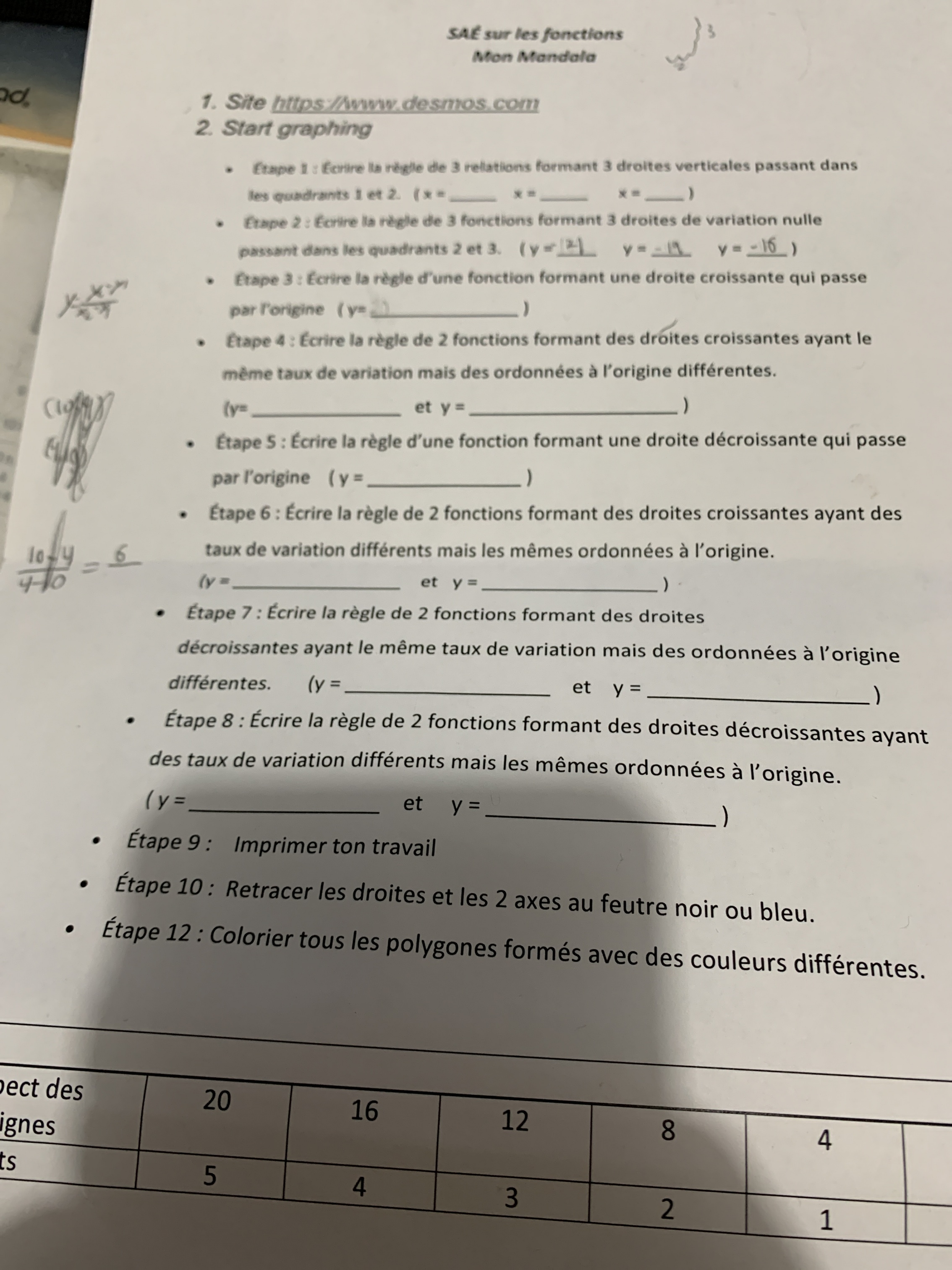 À l'étape 3 on te demande une droite croissante qui passe par l'origine.